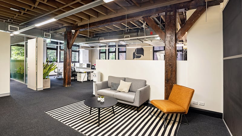 The suite comprises of 155 sqm spacious open-plan office with excellent natural light and stunning exposed timber beams.