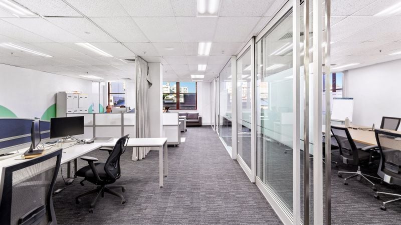 - Bright corner office with existing fit-out