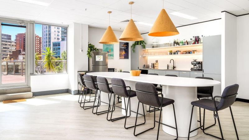 - Expansive kitchen and central island bench with staff breakout lounges directly opposite