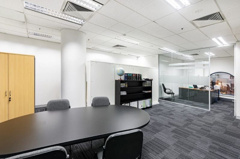 Whole floor with existing fit out comprising reception, two boardrooms, one small meeting room, two offices, breakout/kitchenette and spacious open plan work area.
